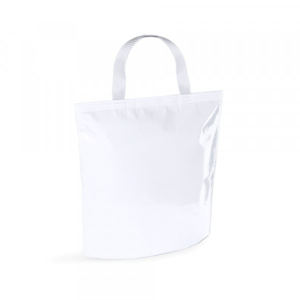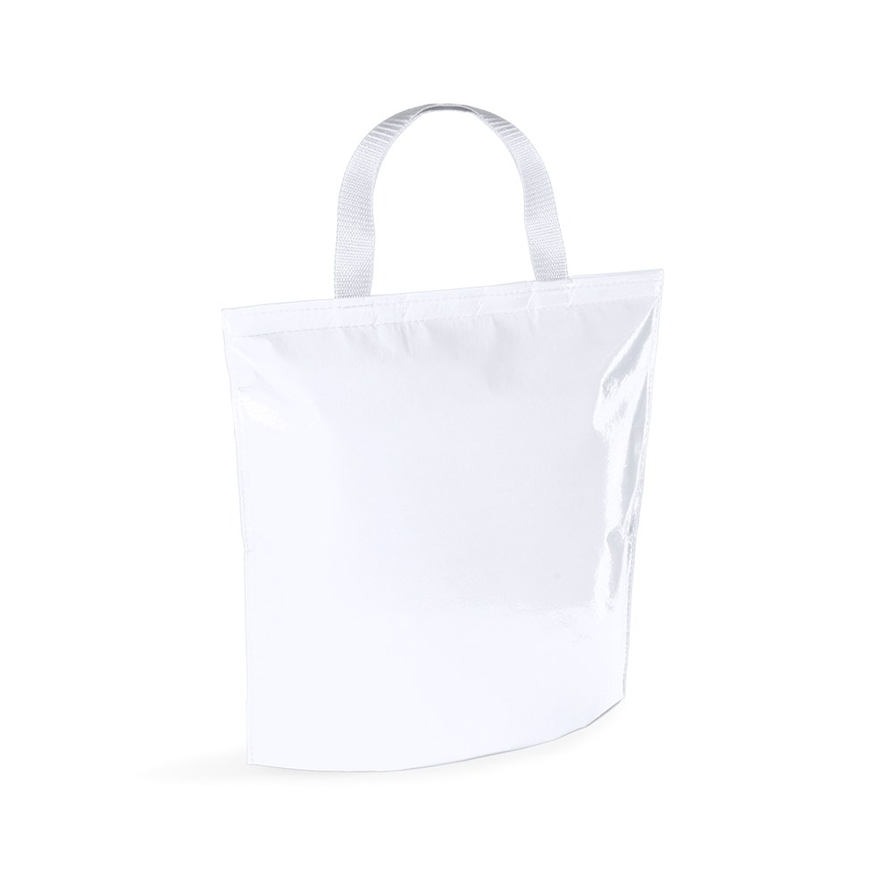 Non-Woven-Kühltasche aus resistentem Faservlies mit glänzender laminierter Oberfläche und Klettverschluss. Mit bequemen Nylon-Tragegriffen in passender Farbe und Isotherm-Innenraum in Aluminium-Ausführung. Belastbar mit bis zu 7 kg.