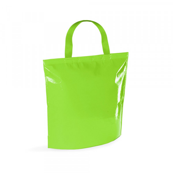 Non-Woven-Kühltasche aus resistentem Faservlies mit glänzender laminierter Oberfläche und Klettverschluss. Mit bequemen Nylon-Tragegriffen in passender Farbe und Isotherm-Innenraum in Aluminium-Ausführung. Belastbar mit bis zu 7 kg.