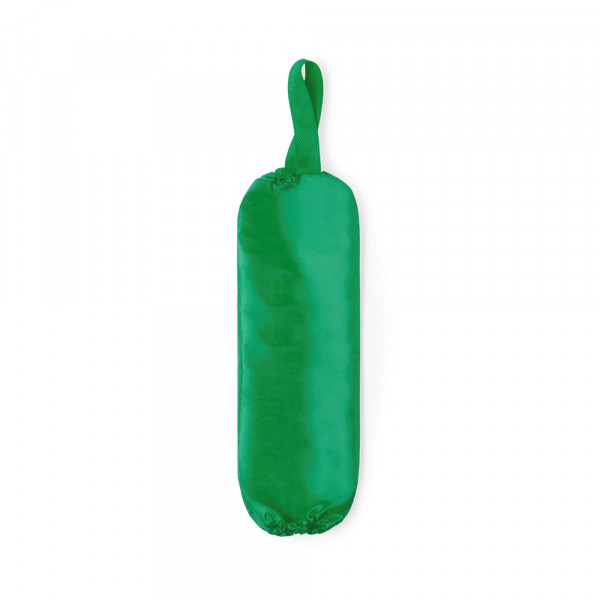 Recycling-Tasche zur Aufbewahrung von Plastiktüten. Aus weichem 210D Polyester in kräftigen Farben. Mit Öffnung an der Ober- und Unterseite und farblich passender Schlaufe zum Aufhängen.