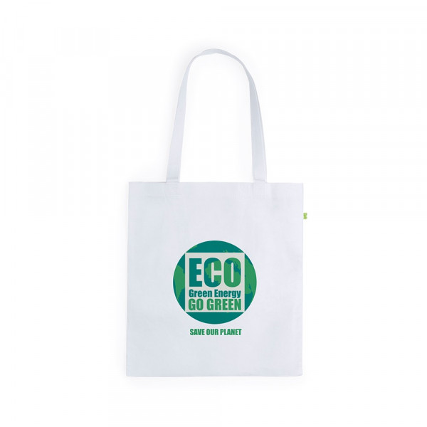 Ökologische Tasche aus hochresistenten Bambusfasern. Mit 70 cm langen Henkeln und Steppnähten. Belastbar mit bis zu 10 kg.