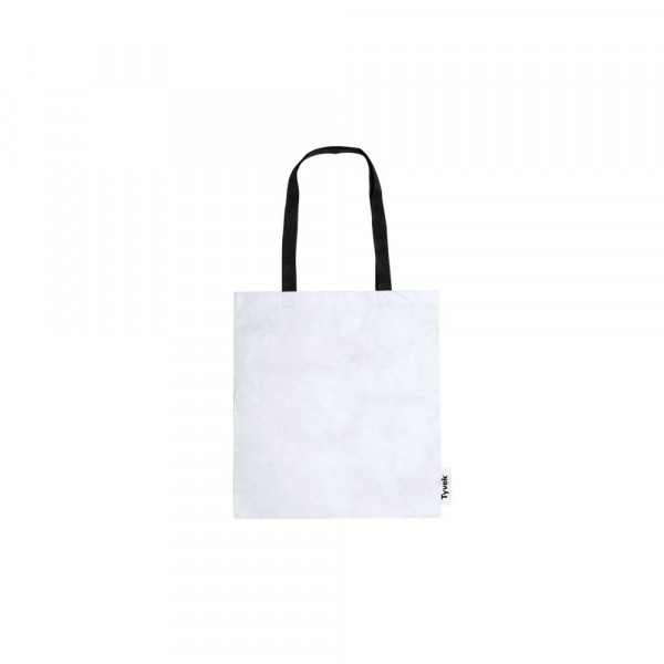 Tasche aus weichem und leichtem Tyvek®-Material, 100% recycelbar und aus Polyethylenfasern hergestellt, die sich besonders durch ihre Widerstandsfähigkeit, Haltbarkeit und leichte Bedruckbarkeit auszeichnen. Schwarze farbige, verstärkte, 70 cm lange Griffe und Widerstandsfähig bis zu 7 kg Gewicht. Tyvek® Seitenetikett.