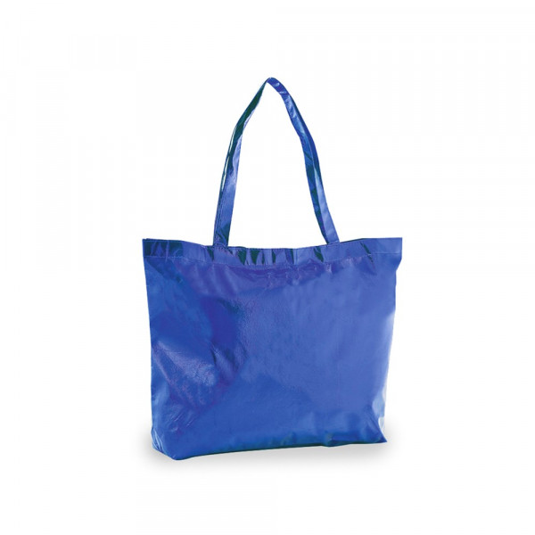 Non-Woven-Tasche aus laminiertem Faservlies (110 g/m2) in Metallic-Ausführung und einer Vielzahl von lebendigen Farben. Mit 55 cm langen, verstärkten Griffen, Zwickel und Steppnähten. Belastbar mit bis zu 9 kg.