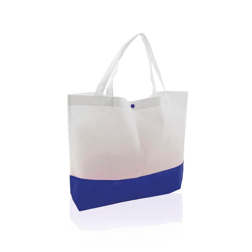 Non-Woven-Tasche aus Faservlies (90 g/m2) in Weiß mit Boden und Druckknopf in einer Vielzahl von lebendigen Farben. Mit 45 cm langen Henkeln, Zwickel und Steppnähten. Belastbar mit bis zu 9 kg.