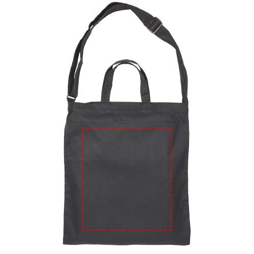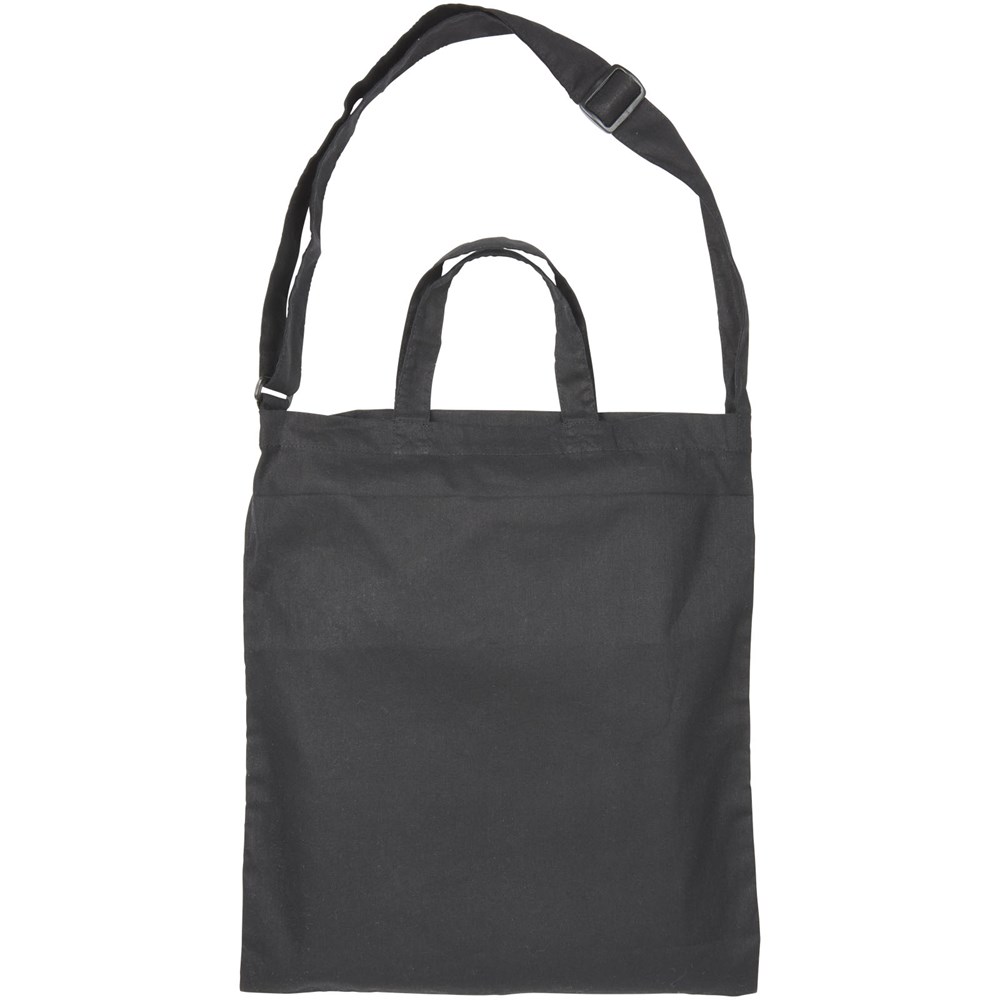 Tragetasche mit kurzen Griffen, Schulterriemen und offenem Hauptfach. Tragegriffhöhe beträgt 17 cm. Schultergurt ist zwischen 1m - 1,29m Länge verstellbar. Die Breite des Schulterriemens beträgt 3,8 cm.