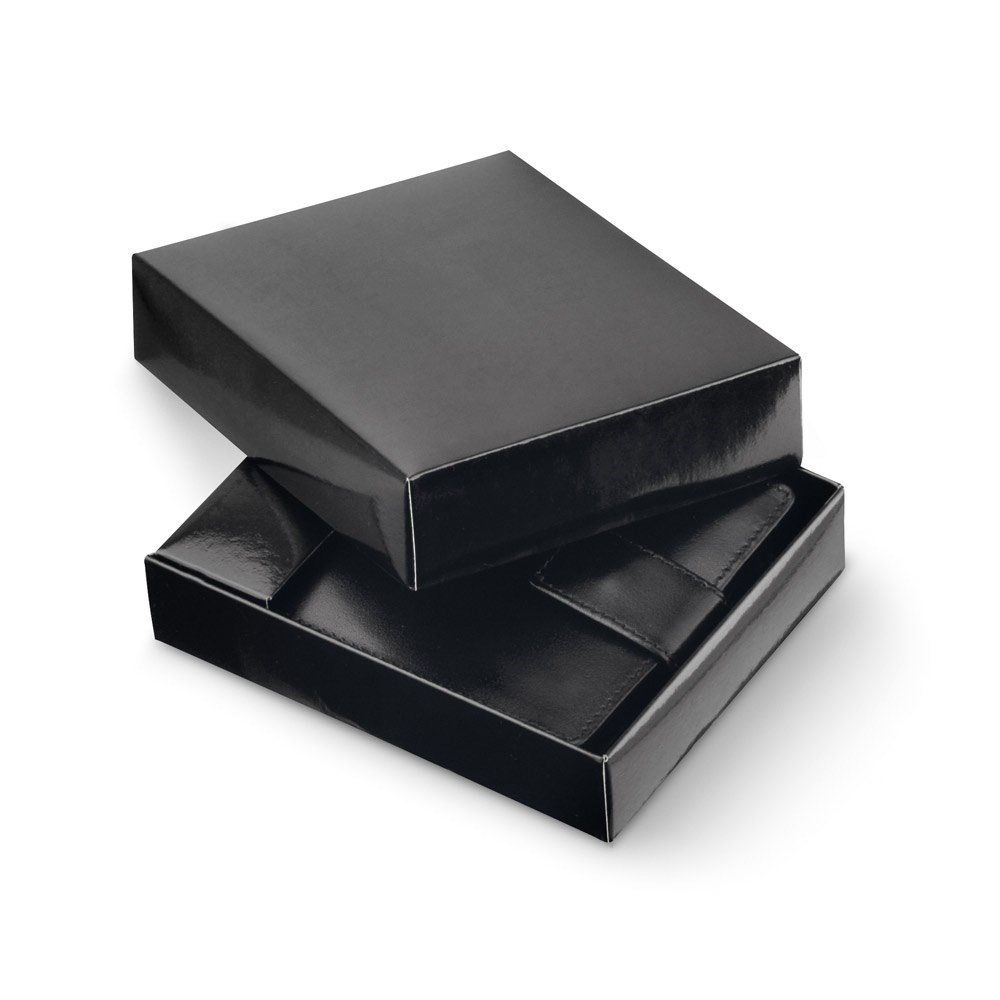Geldbeutel aus glänzendem Leder mit 3 Geldscheinfächern, einem Fach mit Reissverschluss, einer Münztasche, 7 Fächern für Visitenkarten und 6 weitere Fächer. Geliefert in einer Geschenkschachtel. 120 x 96 x 18 mm | Schachtel: 140 x 115 x 30 mm