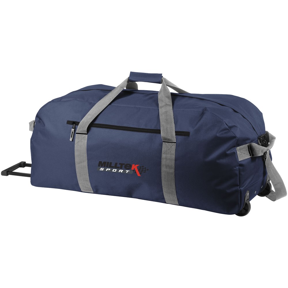 Große Reisetasche, Hauptfach und Tasche an der Vorderseite mit Reißverschluss. Mit Trolley-System.