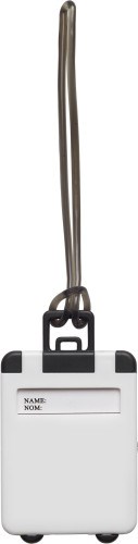 Kofferanhänger aus Kunststoff, mit flexiblem Befestigungsband.
