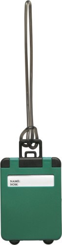 Kofferanhänger aus Kunststoff, mit flexiblem Befestigungsband.