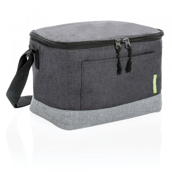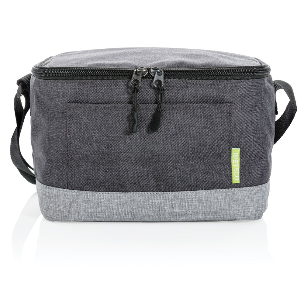 Platz für bis zu 6 Dosen bietet diese Kühltasche. Mit Vortasche und Schultergurt. Hergestellt aus nachhaltigem 100% 600D RPET außen, das Futter aus 100% PEVA. Registered design®