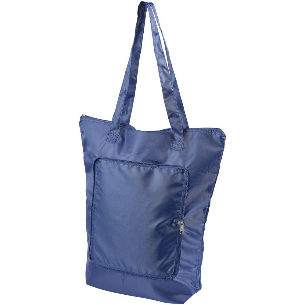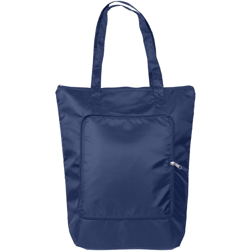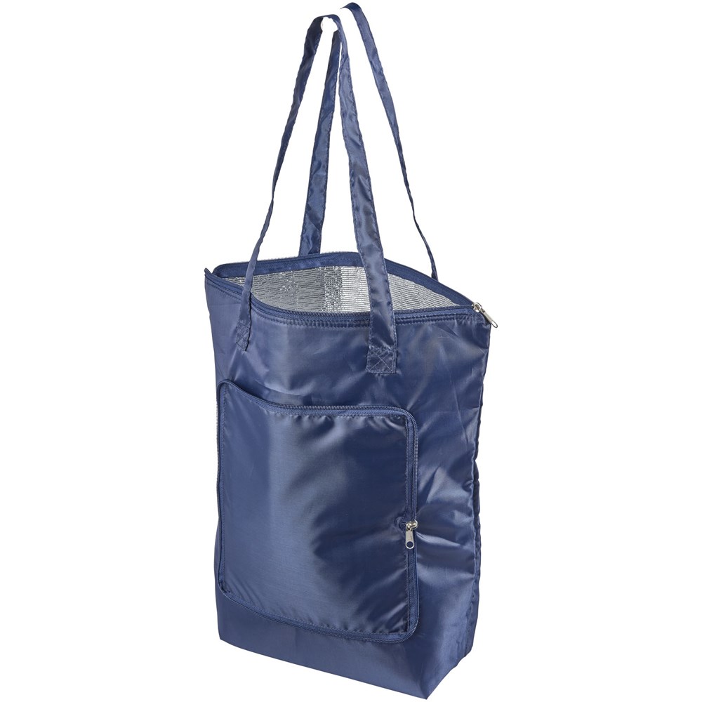 Faltbarer Kühlbeutel, der zu einem kleinen Beutel gefaltet werden kann. Hauptfach mit Reißverschluss und innen mit Aluminiumfolie. Zusätzliches Fach auf der Vorderseite. Größe gefaltet 25 x 13,5 cm. Tragegriffhöhe 30 cm.