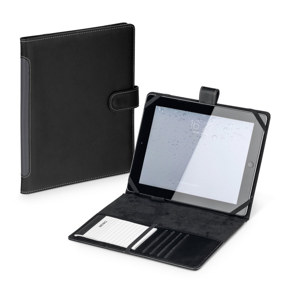 Tablet-Hülle (bis 10'5'') aus Lederimitation, mit einem Notizblock, Kugelschreiberhalterung und Kartenfächer. 210 x 250 x 25 mm