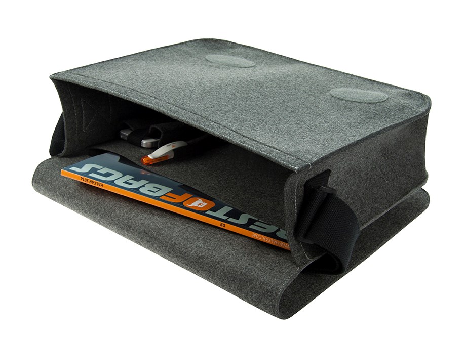 Hauptfach mit Organizer-Elementen; flaches Einsteckfach innen; bequemer Schultergurt; großer Überschlag mit Klettverschluss als ideale Stickfläche für Ihre Promotion