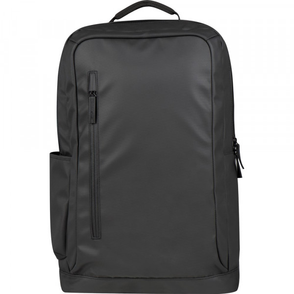 Hochwertiger, wasserfester Rucksack aus 600D PU mit verstärkten, atmungsaktiven Schultergurten, Seiten- sowie Innentasche und einem Sicherheitsfach. Geeignet für Laptops bis zu 15,8 Zoll. Ihre Werbung wird auf das Vorfach gedruckt.