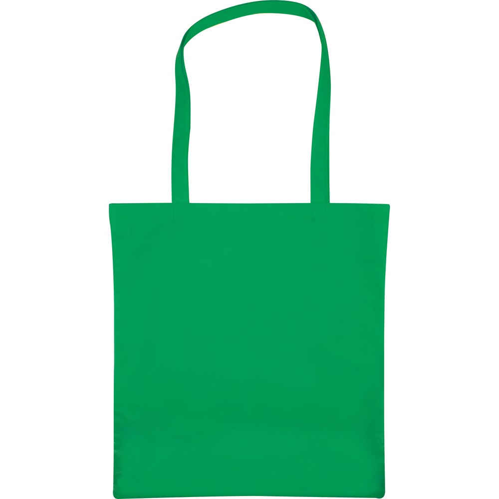 Große Non-Woven Einkaufstasche (Grammatur 80g/m²) in vielen verschiedenen Farben mit langen Tragehenkeln, die mit einer Kreuznaht fest an der Tasche angebracht sind. Der Werbeaufdruck erfolgt auf einer Seite.