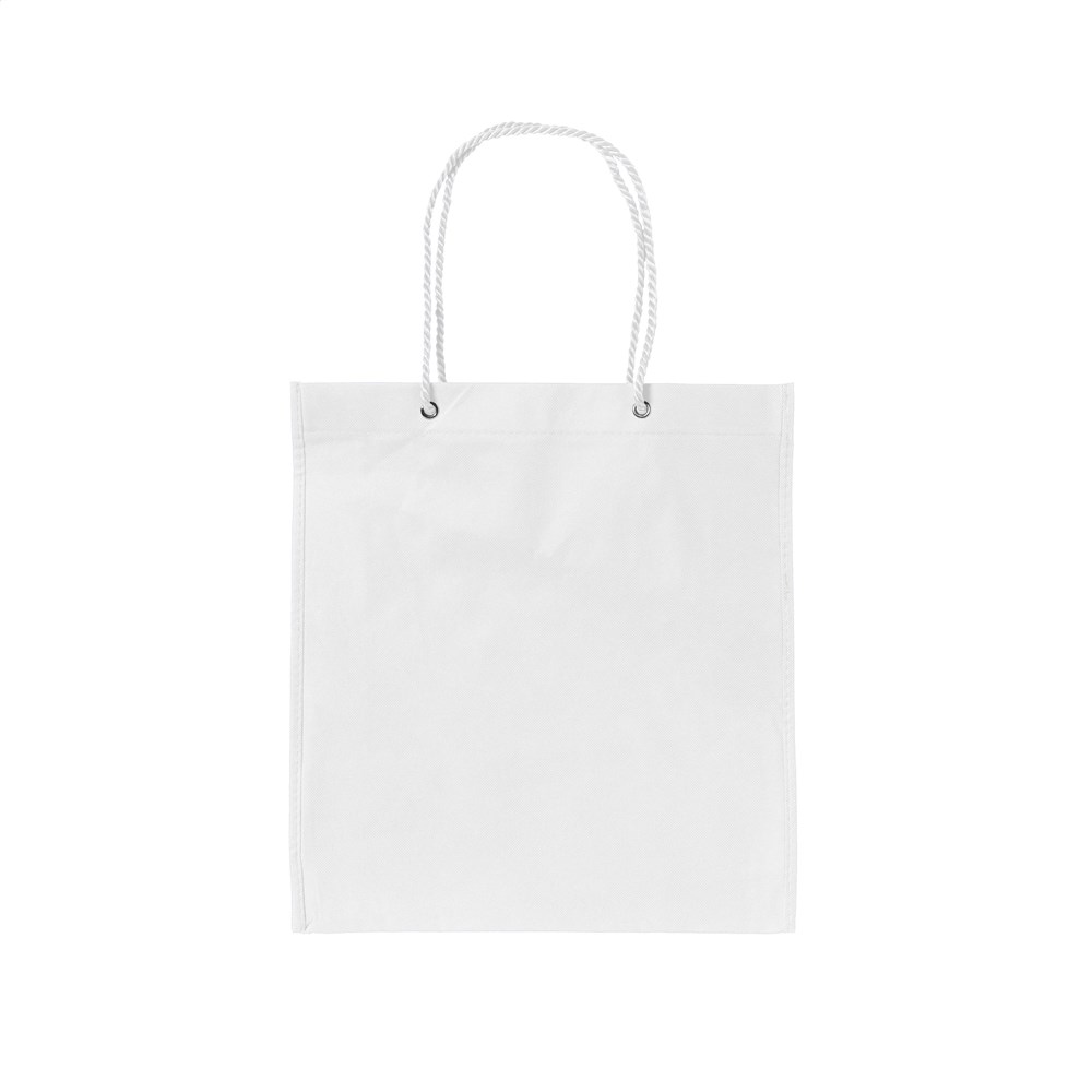Großzügige Einkaufstasche aus Vliesstoff (80 g/m²): eine superleichte und starke Kunstfaser. Mit starken Kordelhenkeln.