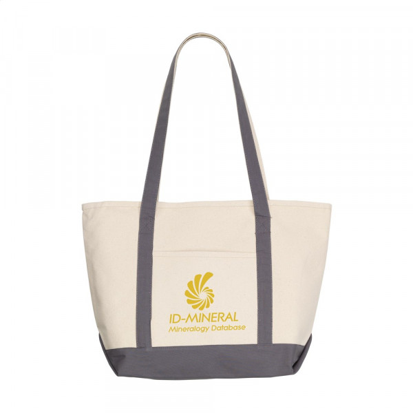 Wunderschöne Einkaufs- und Strandtasche aus robustem Canvas (390 g/m²). Breites und zeitloses Modell mit langen Griffen und Einsteckfach auf der Vorderseite. Natürlich mit auffallenden Farbakzenten.