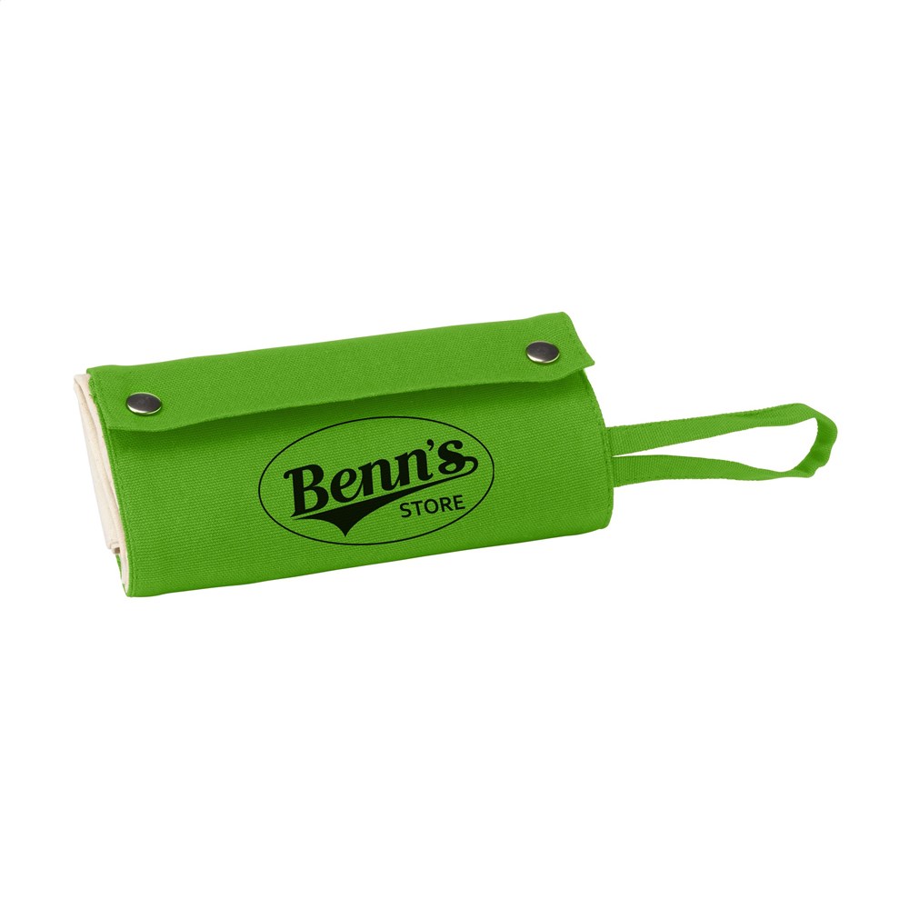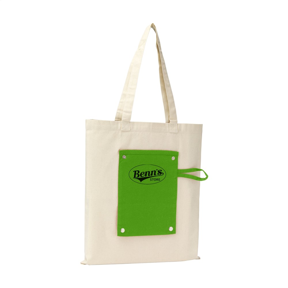 Faltbare Einkaufstasche aus robuster Baumwolle (180 g/m²) mit doppelter Trageschlaufe und Canvas-Einsteckfach (225 g/m²) an der Vorderseite. Die Tasche lässt sich so leicht zu einem praktischen Päckchen zusammenfalten. Mit Schlaufe und 2 Druckknöpfen. Abmessungen aufgeklappt 41,5 x 37 cm.