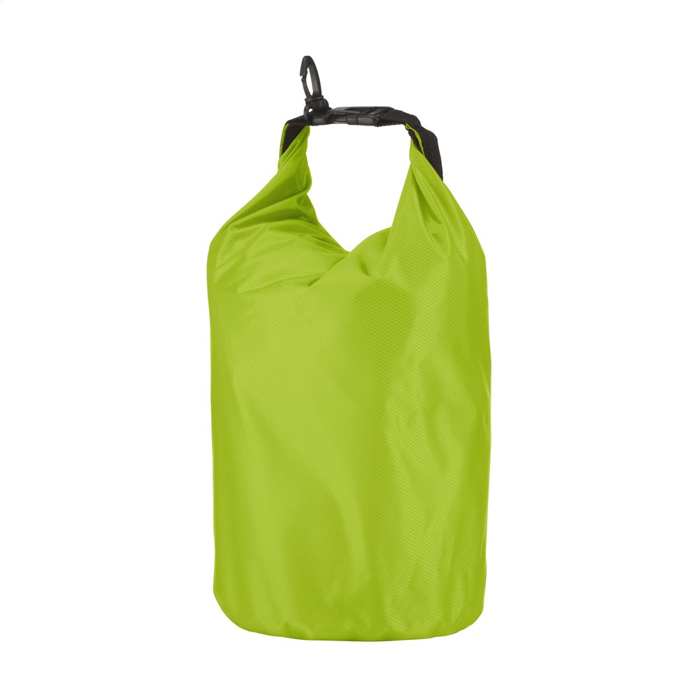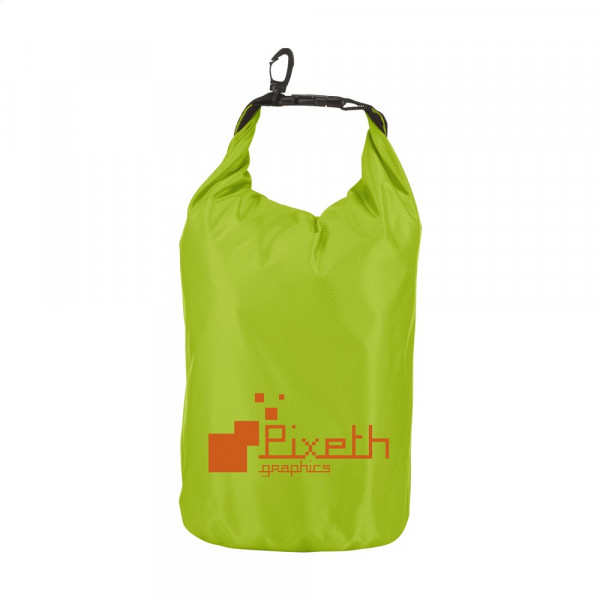 Robuste Tasche aus 210T Ribstop-Polyester/PVC zur zum Schutz von persönlichen Gegenständen. Die Tasche schwimmt auf dem Wasser und ist geschützt vor Wasserstrahlen und Spritzwasser, sollte aber nicht untergetaucht werden. Mit Rollverschluss an der Oberseite, Klicksystem und praktischem Karabinerhaken zur einfachen Befestigung an anderem Gepäck oder Gurten. Fassungsvermögen: ca. 5 Liter.
