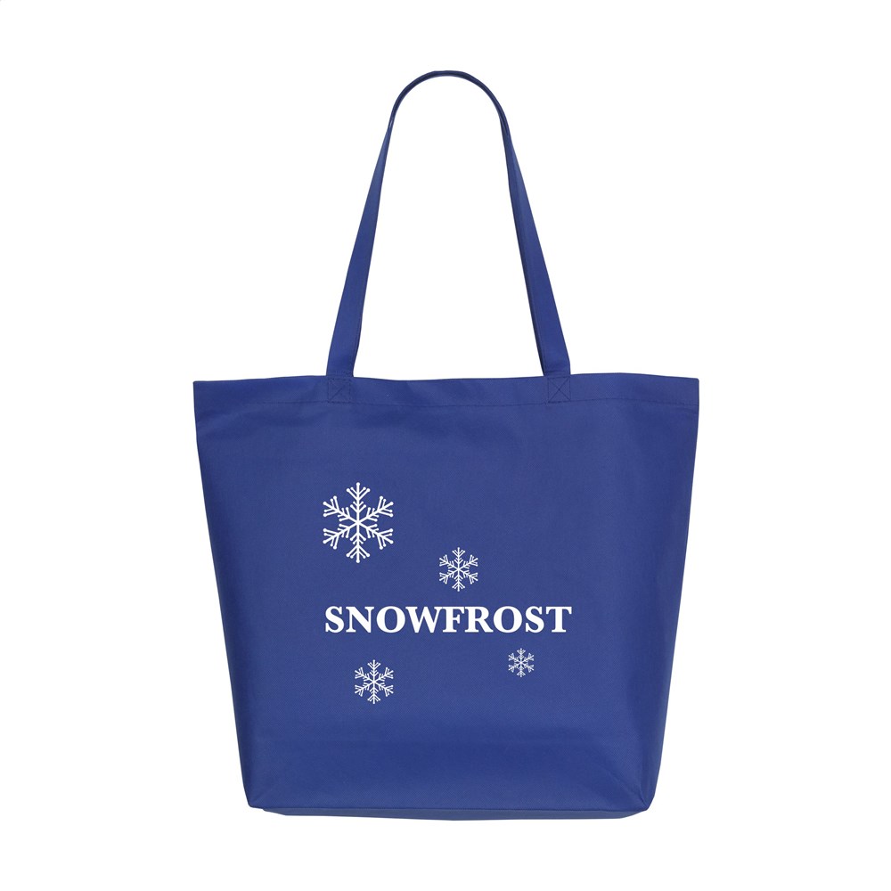 Geräumige, Einkaufs- und Strandtasche aus Vlies (80 g/m²) mit langen Henkeln. Breites Modell. Stark und leicht.