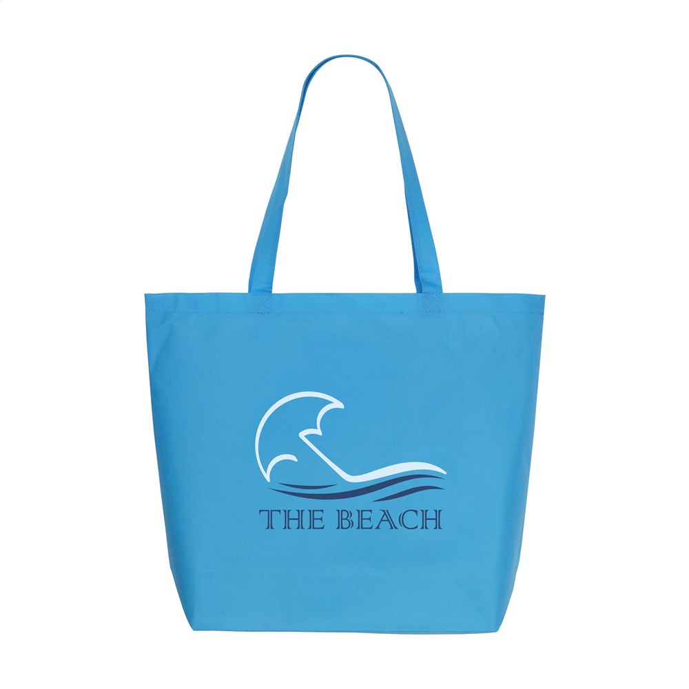 Geräumige, Einkaufs- und Strandtasche aus Vlies (80 g/m²) mit langen Henkeln. Breites Modell. Stark und leicht.