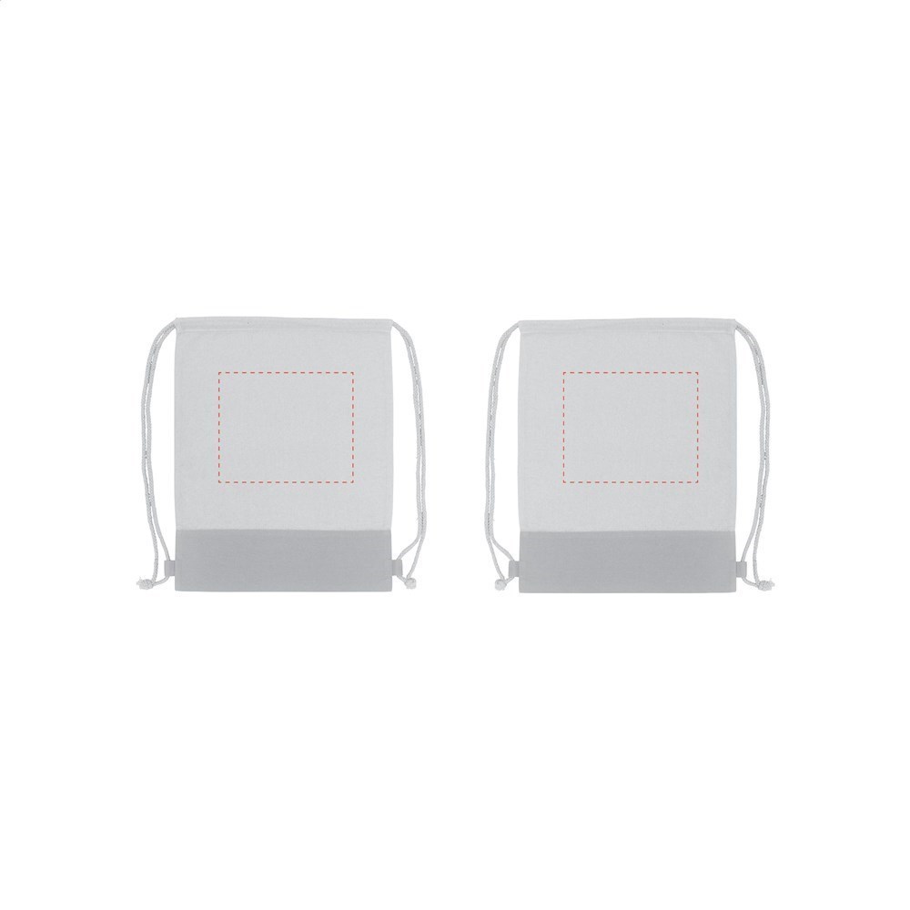 Rucksack mit Kordelzug aus 100% Baumwolle (140 g/m²) und farbigem Einsatz. Fassungsvermögen: ca. 8 Liter.