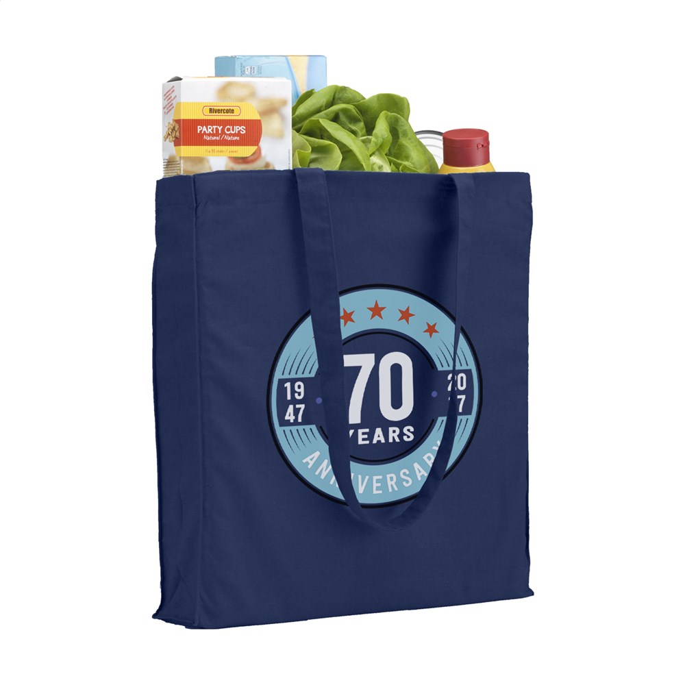 Robuste Einkaufstasche mit langen Griffen. Aus 100 % gewebter Baumwolle (160 g/m²).