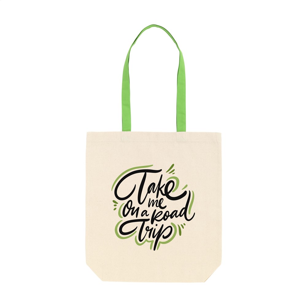 Robuste Einkaufstasche aus hochwertigem, gewebtem Canvas (220 g/m²). Mit langen, farbigen Griffen.