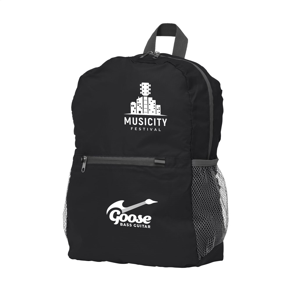 Faltbarer und leichter Rucksack aus starkem, ausdauernden 190T Jacquard-Polyester. Mit einem überraschend großen Platz zum Befüllen, Reissverschluss mit auffälligen neon Farbakzenten, 2 Netztaschen, anpassbaren Netztschulterriemen und Trageschlaufe. Rucksack ins Etui: Rückseite öffnen, Rucksack einstecken und Reissverschluss schliessen. Abmasse gefaltet 21 x 17 x 3 cm.