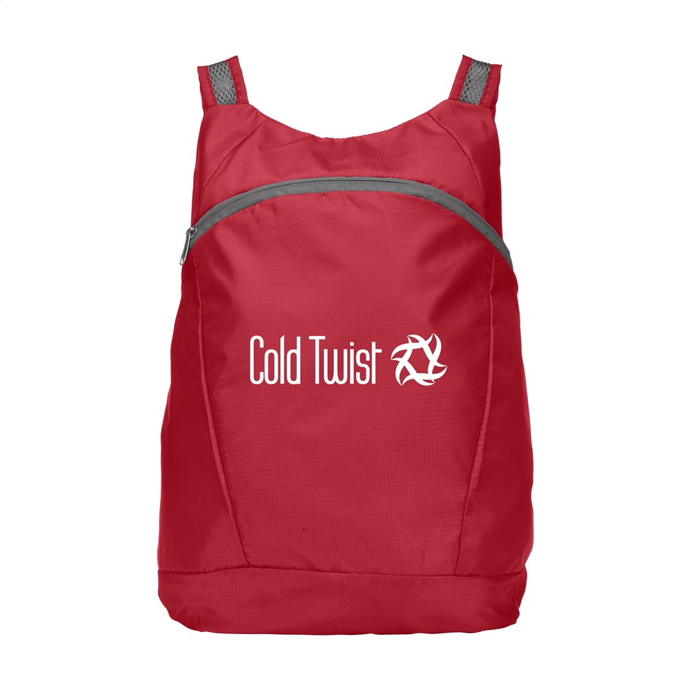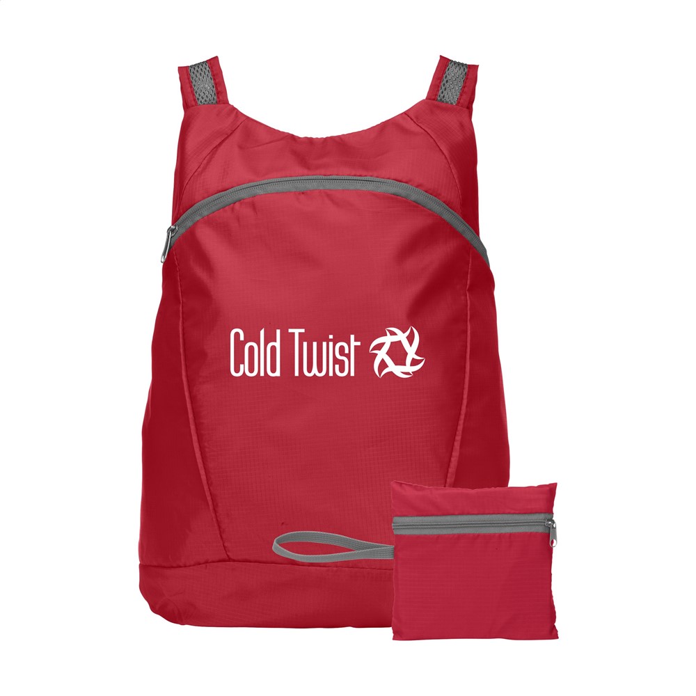 Faltbarer und leichter Rucksack aus starkem, resistenten 190T Jacquard-Polyester. Mit geräumigem Innenteil und anpassparen Netzschultergurten. Vom Rucksack zum Etui: Falten Sie den Rucksack am Rückenteil in das Etui und schliessen Sie den Reissverschluss. Abmasse ausgebreitet: 40 x 33 cm. Abmasse eingefaltet 13 x 12,5 x 2,5 cm.