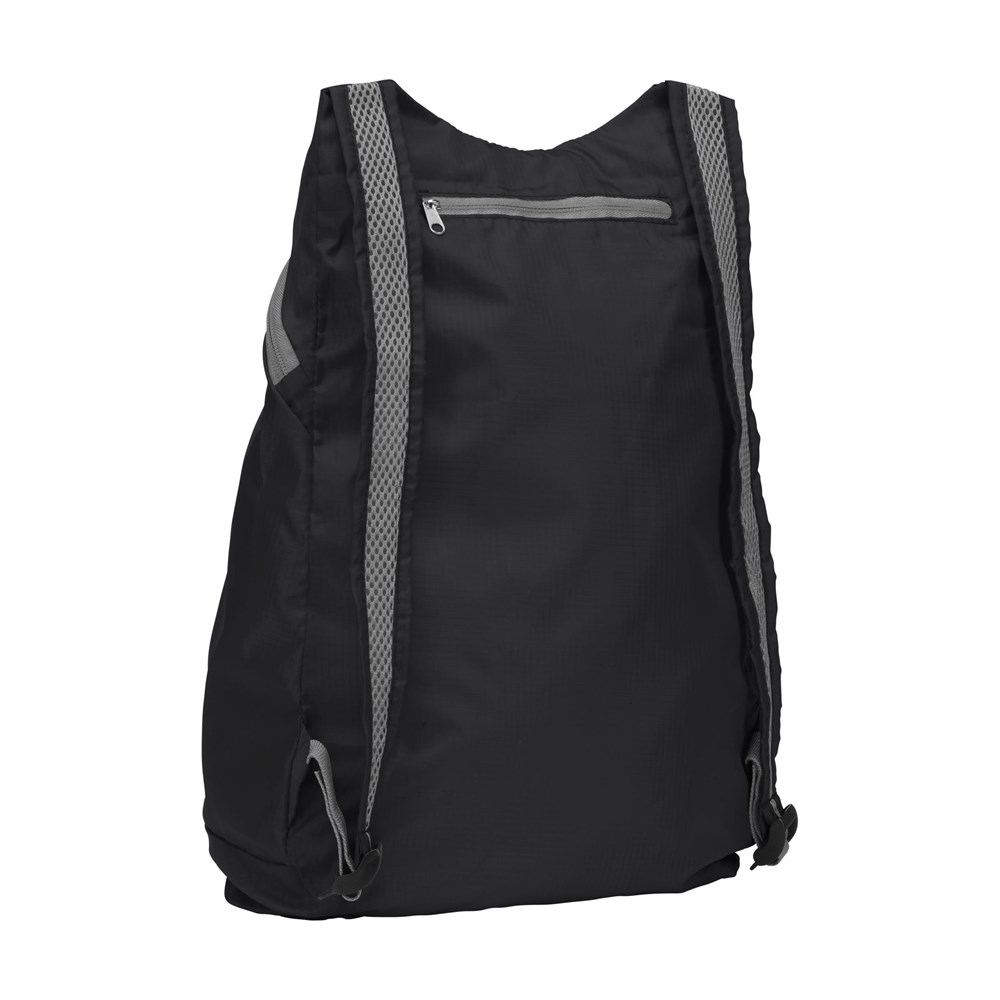 Faltbarer und leichter Rucksack aus starkem, resistenten 190T Jacquard-Polyester. Mit geräumigem Innenteil und anpassparen Netzschultergurten. Vom Rucksack zum Etui: Falten Sie den Rucksack am Rückenteil in das Etui und schliessen Sie den Reissverschluss. Abmasse ausgebreitet: 40 x 33 cm. Abmasse eingefaltet 13 x 12,5 x 2,5 cm.
