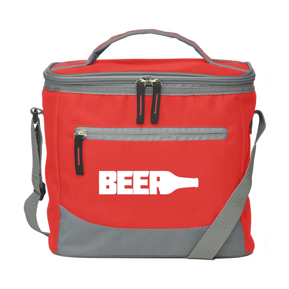 Kühltasche im praktischen Format. Aus 600D Polyester. Mit großem Kühlfach,Fronttasche mit Reissverschluss, Griff und anpassbarem Schultergurt. Passend für 12 Getränkedosen.