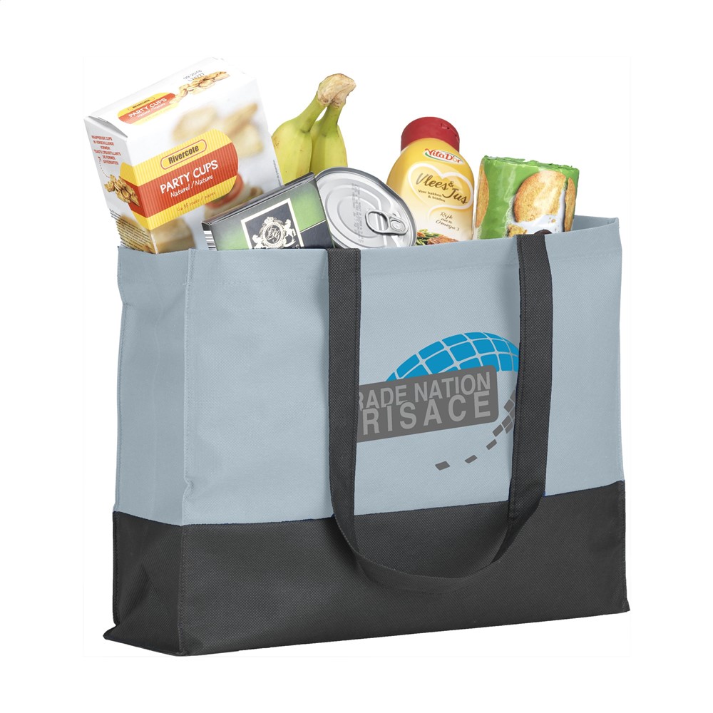 Praktische Tasche mit langen Henkeln aus Vliesmaterial (80 g/m²). Fest und leicht.