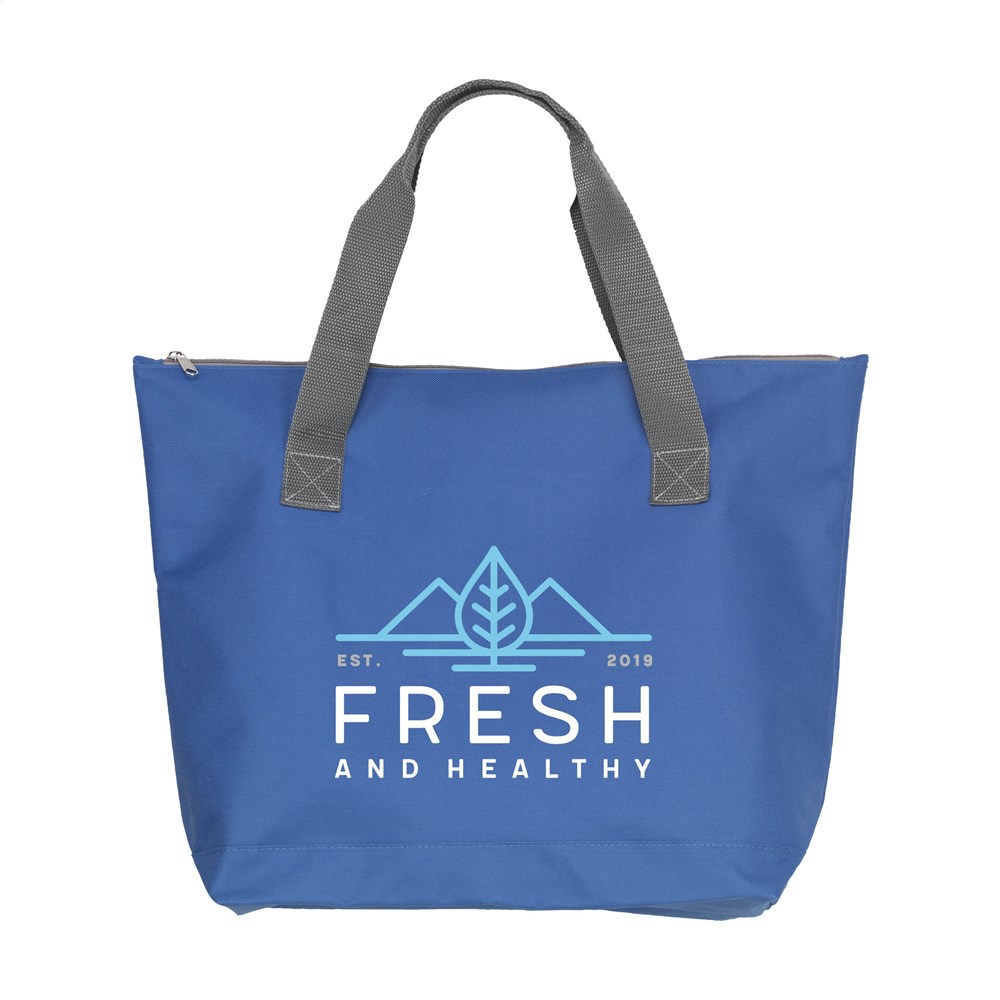 Einkaufstasche aus 600 D Polyester mit Reißverschluss und stabilen Handgriffen.