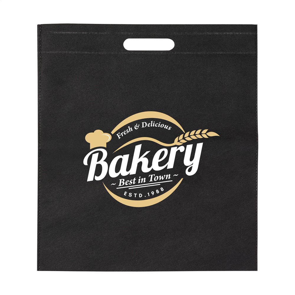 Werbetasche aus Vliesstoff (80 g/m²): eine superleichte und starke Kunstfaser. Mit ausgestanzten Henkeln.