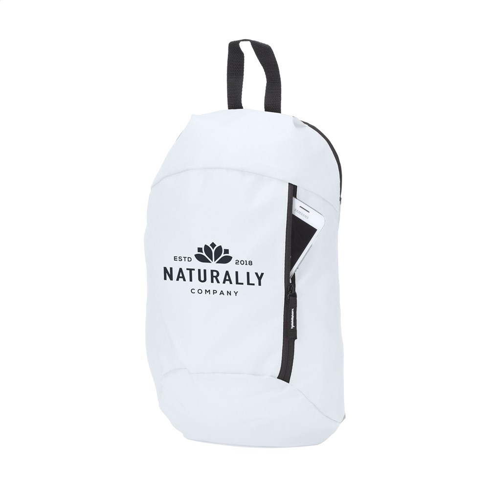 Superleichter Rucksack aus Polyester mit großem Staufach, Reißverschlusstasche vorne, verstellbaren, gepolsterten Schulterriemen und Aufhängeschlaufe. Fassungsvermögen: ca. 8 Liter.