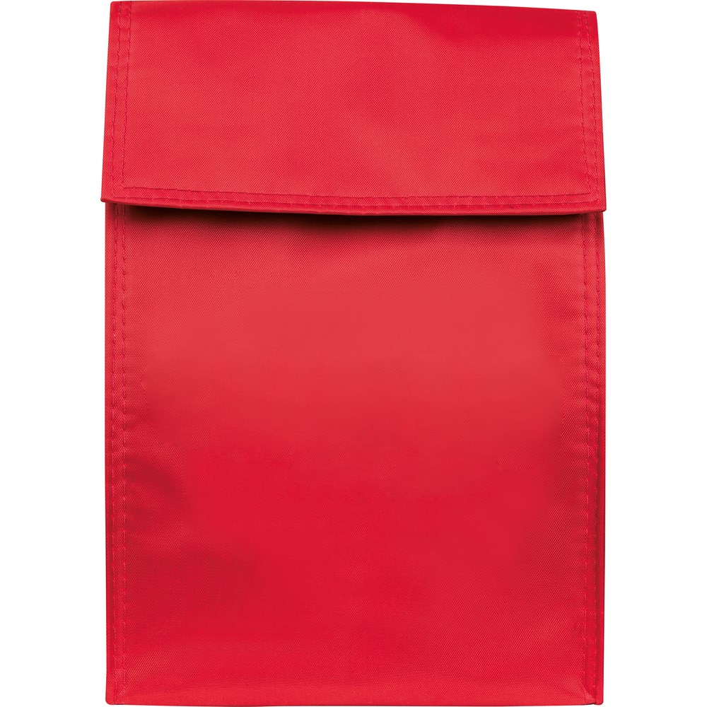 Einfache Kühltasche aus Polyester mit islioerndem Innenteil und Klettverschlüssen zum Verschließen. Ihre Werbung wird auf eine Seite gedruckt.