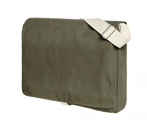 Überschlagtasche mit wertigen Metall-Accessoires; Bügelverschluss; großes Hauptfach u.a. geeignet für A4 Unterlagen; zwei flache Einsteckfächer auf der Front; rückseitige Befestigungsschlaufe für Trolley-Gestänge - alternativ auch als Handgriff nutzbar; breiter, längenverstellbarer Baumwoll-Schultergurt