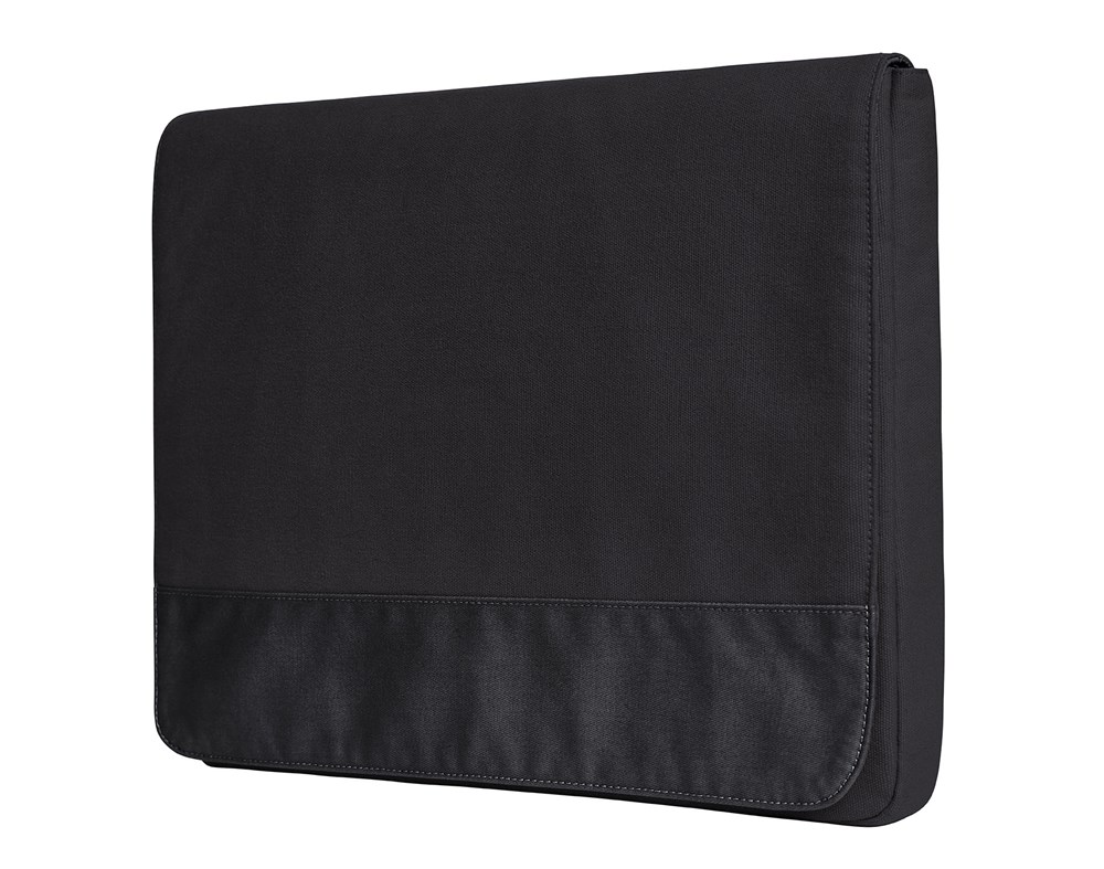 moderne, aufwändig verarbeitete Notebook-Hülle; liebevoll gestaltet mit beschichtetem Baumwoll-Besatz; geeignet für Notebook und DIN A4-Unterlagen; zwei flache Einsteckfächer auf der Front; Reißverschluss-Fach im Überschlag innen; großes Reißverschluss-Fach rückseitig; Magnet-Verschluss
