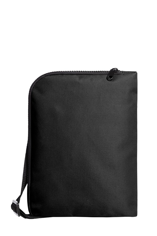 Reißverschluss-Hauptfach geeignet für DIN A4-Unterlagen und Kataloge; flaches Einsteckfach auf der Rückseite; längenverstellbarer Umhängegurt