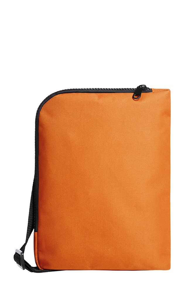 Reißverschluss-Hauptfach geeignet für DIN A4-Unterlagen und Kataloge; flaches Einsteckfach auf der Rückseite; längenverstellbarer Umhängegurt
