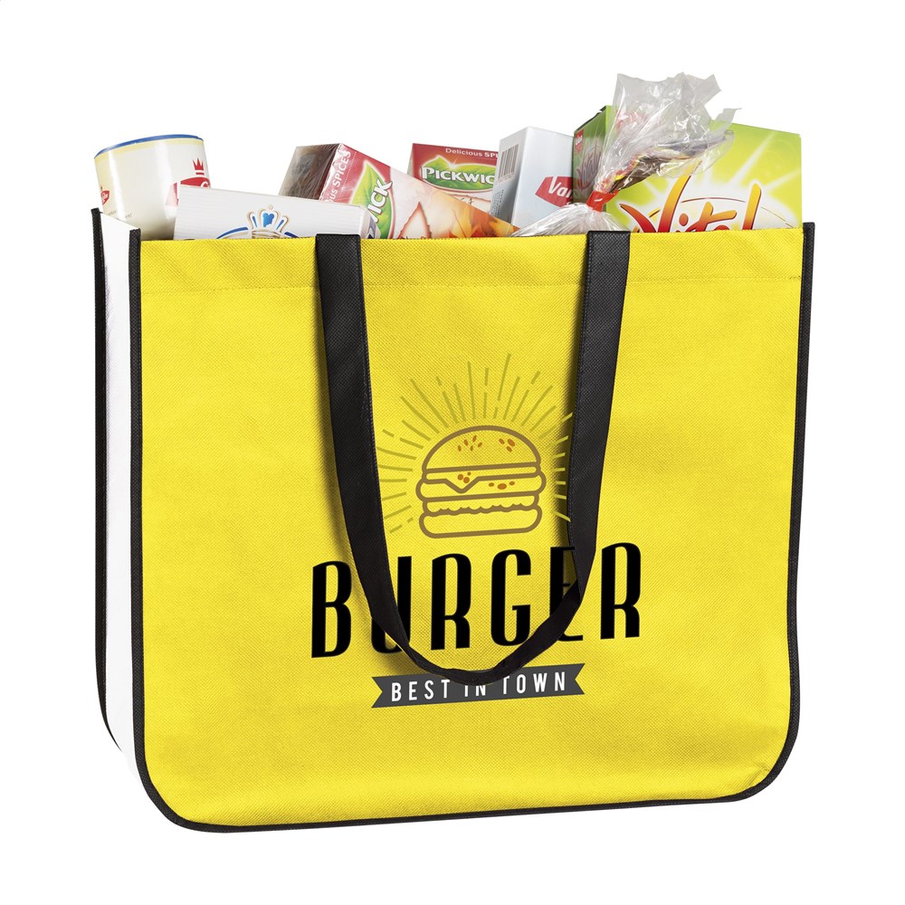Große Vlies-Einkaufstasche (100 g/m²) mit langen Henkeln. Seiten und Boden in kontrastreichem,... mehr