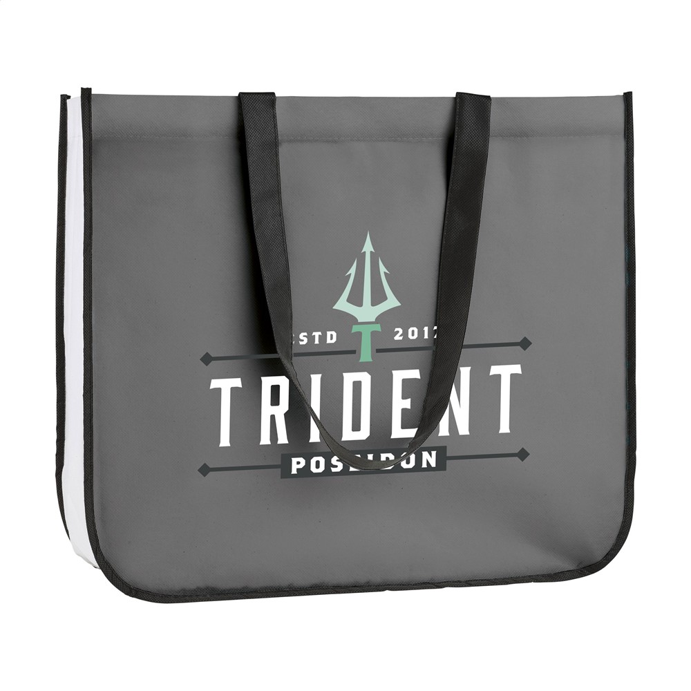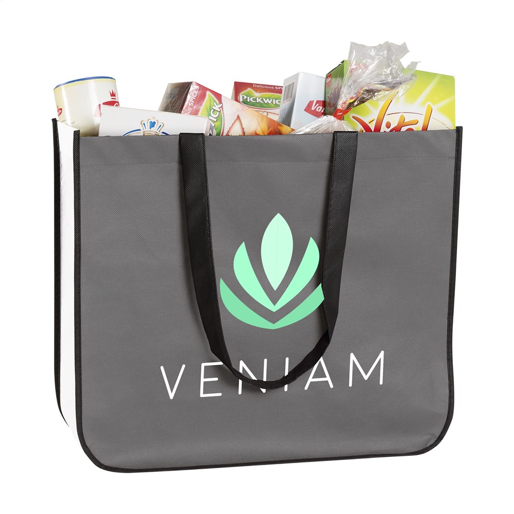 Große Vlies-Einkaufstasche (100 g/m²) mit langen Henkeln. Seiten und Boden in kontrastreichem, auffallenden Weiß.