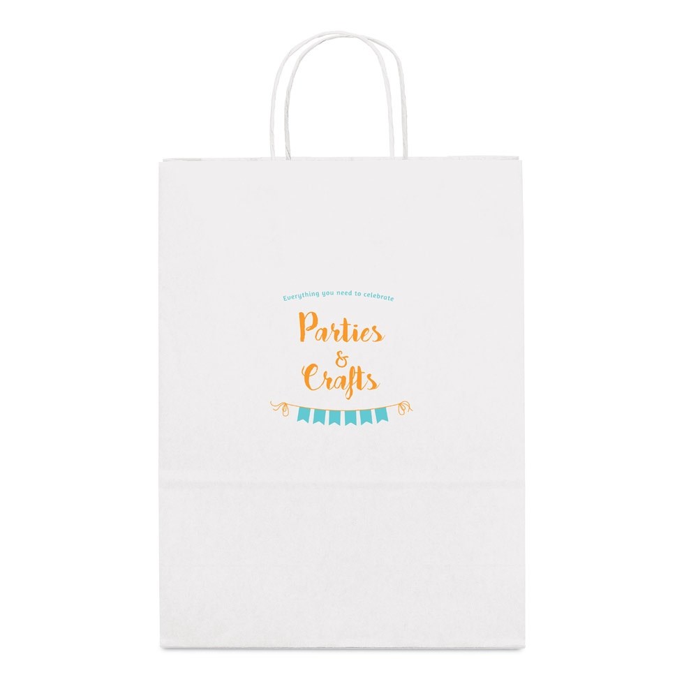 Tragetasche aus Kraftpapier (90 g/m²) mit gedrehten Henkeln aus Papier. 180 x 240 x 80 mm