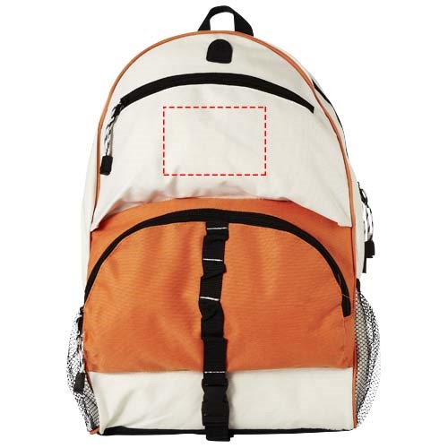 Rucksack mit gepolsterten Schulterriemen, Netztaschen auf beiden Seiten, abnehmbarer Handyhülle, Fronttasche mit Reißverschluss für MP3/MP4-Player und mehreren kleinen Haken für Schlüssel und Ohrhöreröffnung.