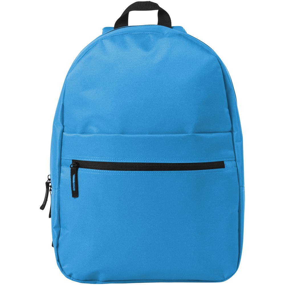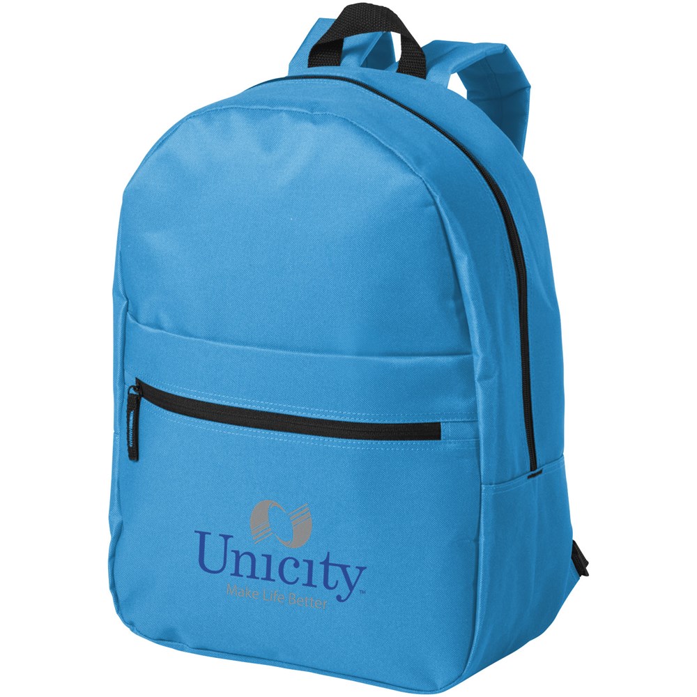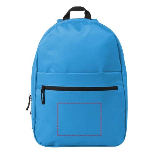 Rucksack mit großem Hauptfach und Reißverschluss, Fach auf der Vorderseite mit Reißverschluss und Fach mit Klettverschluss, verstellbare, gepolsterte Schulterriemen und verstärkter Tragegriff oben.