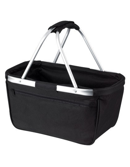 Formschöner Einkaufskorb mit Alurahmen und Reißverschluss-Vortasche | Faltbar | 600D Polyester | Lieferung ohne Inhalt/Deko