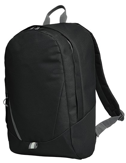 Moderner Rucksack mit Reißverschluss-Vortasche | Hauptfach mit 2-Wege-Reißverschluss und flachem Einsteckfach innen | Regenklappe | Reflektor-Streifen vorne, Rücken und Schultergurte gepolstert | Handgriff | Lieferung ohne Inhalt/Deko