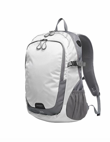 Geräumiges Hauptfach mit 2-Wege-Reißverschluss und Einsteckfach innen | Polyester 420D & Ripstop | Seitliche Zurrgurte | Reißverschluss-Vortasche mit zwei Einsteckfächern | Reflektor-Streifen vorne | Seitliche Netzfächer | Kopfhörerausgang | Gepolsterte Schultergurte mit höhenverstellbarem, dehnbarem Brustgurt | Gepolsterter Rücken | Lieferung ohne Inhalt/Deko