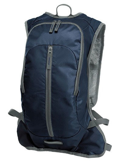 Polyester 420D & Ripstop | Sportlicher, ergonomisch geschnittener Rucksack | Gepolstertes Gurtsystem | Verstellbarer Brust- und Hüftgurt | Reißverschlussvortasche | Innen flaches Einsteckfach, u.a. geeignet für zusätzlich lieferbare Wasserblase | Geeignet für Siebdruck, Transferdruck u. Stick - Domingträger zusätzlich anbringbar | Lieferung ohne Inhalt/Deko