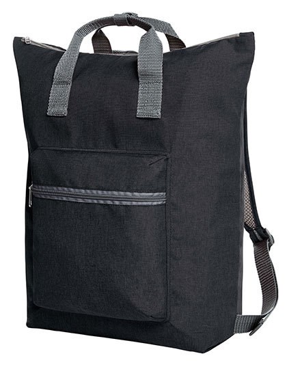 Moderner Rucksackshopper | Hauptfach mit Reißverschluss | Reißverschluss-Vortasche | Reißverschluss-Innentasche | Handgriffe mit Druckknopfmanschette | Längenverstellbares, atmungsaktives Tragesystem | Falt- und Verstaufunktion | Lieferung ohne Inhalt/Deko